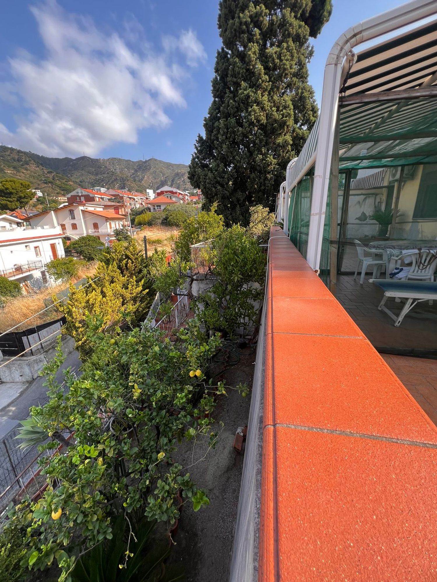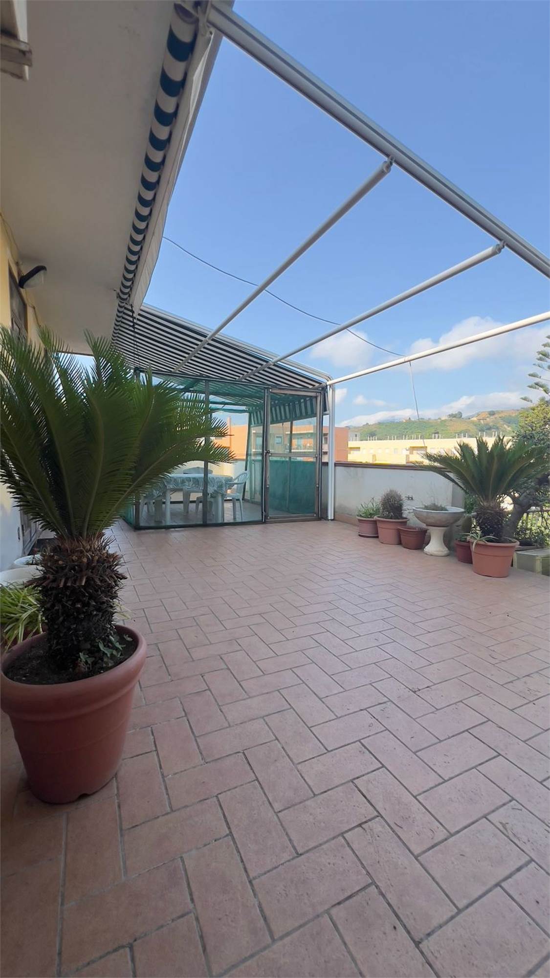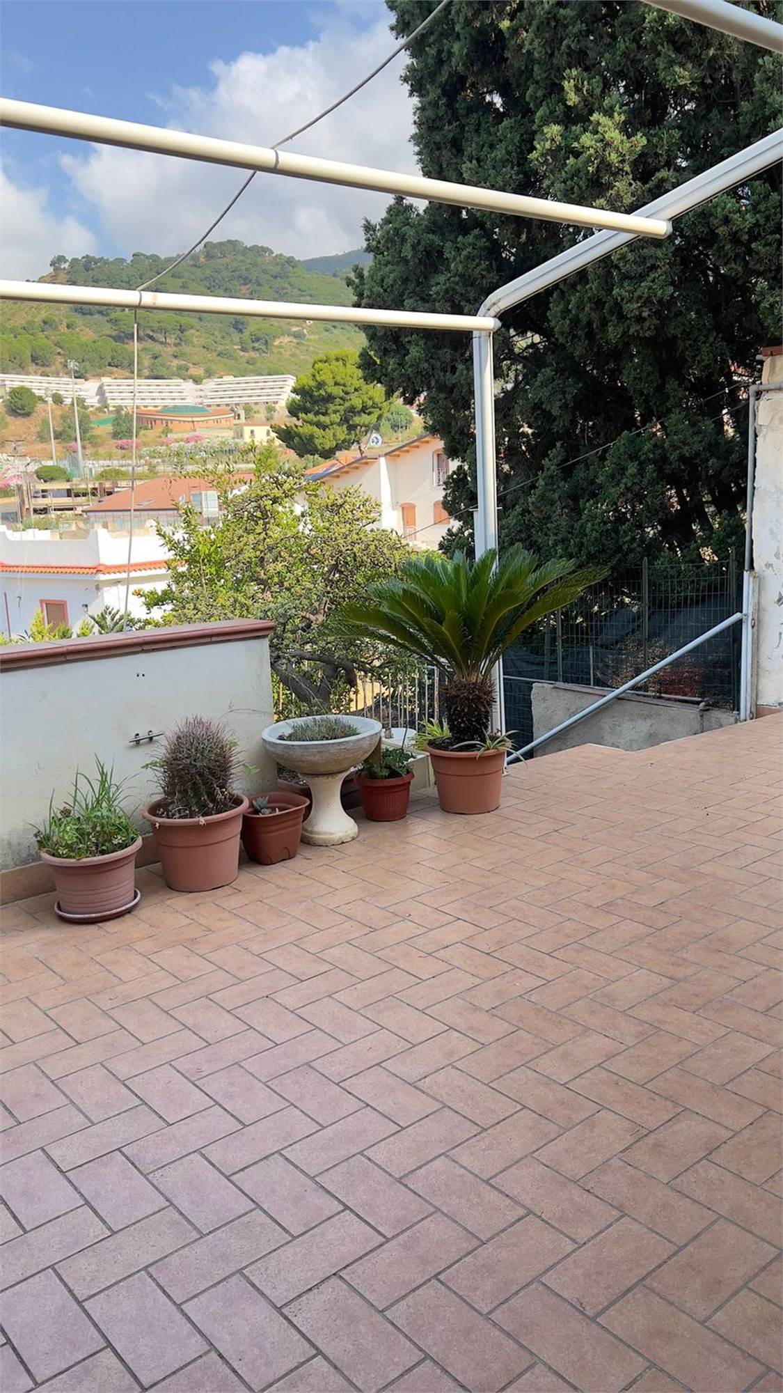 Immagina di varcare il cancello e salire la rampa di scale che conduce ad un ampio terrazzo panoramico sulla città, perfetto per rilassarsi, ospitare amici o godere una cena all’aperto sotto il cielo stellato.
